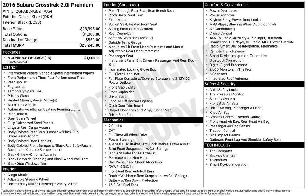 2016 Subaru Crosstrek 2.0i Premium